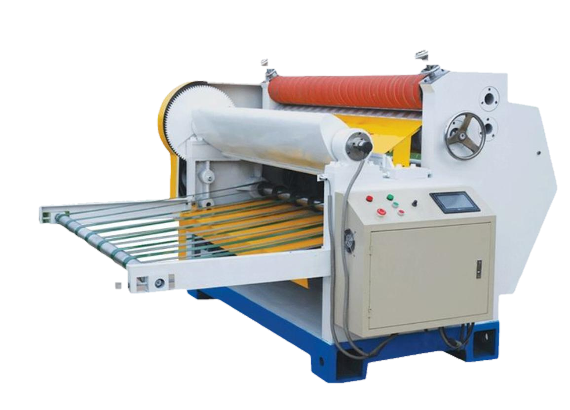The machine is designed for efficient, precise, and user-friendly operation. It features a suction hood structure with a high-pressure blower and silencer for effective material handling and noise reduction. Centralized air and electrical controls enhance safety, while the robust construction ensures durability. A steam spray device regulates core paper moisture, optimizing processing. The advanced drive system, equipped with a frequency conversion motor and durable corrugated rollers, offers precise speed control and quick flute type changes. The machine includes a sophisticated glue section with automated supply, precise control, and easy maintenance, all managed via a touch screen interface for enhanced usability.